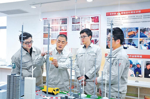 國網(wǎng)檢修公司員工在雙創(chuàng)基地開展一次設(shè)備研究。在最大限度激發(fā)內(nèi)部活力的同時(shí),公司還堅(jiān)持眼光向外,以開放合作的姿態(tài)匯聚更多科創(chuàng)力量。為加快形成產(chǎn)學(xué)研用一體的科技創(chuàng)新體系,公司與清華大學(xué)、西安交通大學(xué)等高校建立了聯(lián)合研究機(jī)構(gòu)。同時(shí),公司建成“國家級(jí)、公司級(jí)、各單位級(jí)”三級(jí)實(shí)驗(yàn)室體系,面向全社會(huì)開放100個(gè)實(shí)驗(yàn)室(包括19個(gè)國家級(jí)實(shí)驗(yàn)室),并鼓勵(lì)社會(huì)各界積極參與共建公司各級(jí)實(shí)驗(yàn)室。公司科技成果孵化轉(zhuǎn)化平臺(tái)也已建立。2020年,職工創(chuàng)新成果孵化轉(zhuǎn)化達(dá)200項(xiàng),公司直屬科研單位年度科技成果轉(zhuǎn)化收入達(dá)6.5億元,特高壓換流閥、智能配電終端、安全芯片等一批專利技術(shù)的轉(zhuǎn)化落地,有效提升了電網(wǎng)裝備技術(shù)水平。依托豐富的科技創(chuàng)新成果,公司形成了規(guī)劃設(shè)計(jì)、投資運(yùn)營、工程建設(shè)、裝備制造、技術(shù)標(biāo)準(zhǔn)一體化“走出去”的國際合作模式。截至目前,公司累計(jì)主導(dǎo)編制國際標(biāo)準(zhǔn)84項(xiàng),推動(dòng)515項(xiàng)中國標(biāo)準(zhǔn)在“一帶一路”沿線國家應(yīng)用,顯著提升了我國在國際電工領(lǐng)域的影響力和話語權(quán)。日益完善的科技創(chuàng)新體系和日趨成熟的成果轉(zhuǎn)化機(jī)制,培養(yǎng)了越來越多優(yōu)秀的科技創(chuàng)新人才。目前,公司共擁有國家級(jí)專家人才365名,兩院院士7名,國家有突出貢獻(xiàn)的中青年專家13名,百千萬人才工程國家級(jí)人選28名,中華技能大獎(jiǎng)獲得者5名。